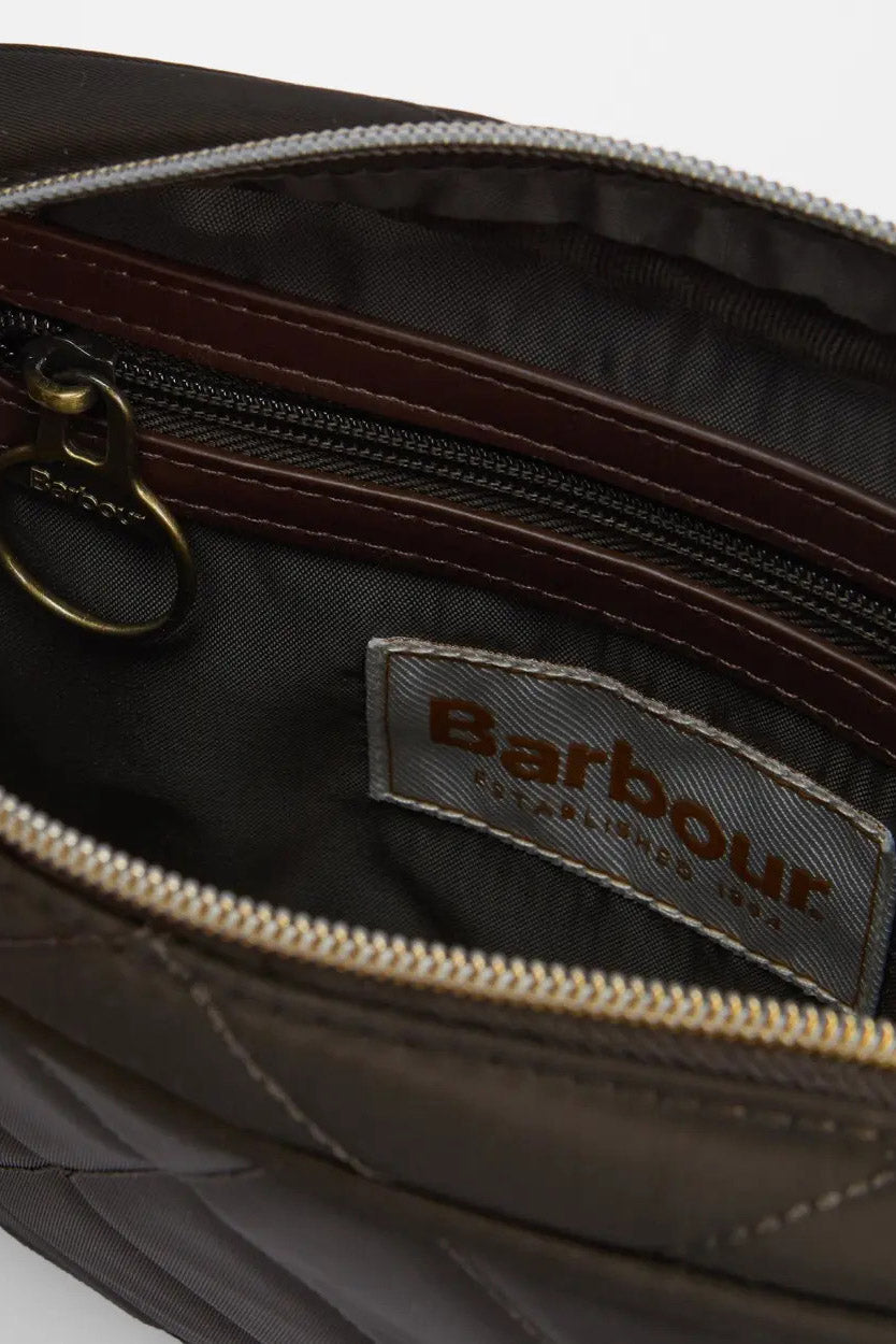 Crafted for everyday ease, the Barbour Quilted Crossbody Bag brings signature diamond quilting to a compact, hands-free silhouette in a classic olive hue. Designed for womenswear, it features a secure zip closure, an external slip pocket for quick access, and an adjustable webbing strap for comfortable wear across the body. The front carries an embossed Barbour badge for a refined finish, with the durable lining keeping essentials neatly in place.