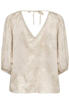 Soaked in Luxury Kitty Blouse - Ancient Scroll Metallic Print
