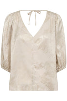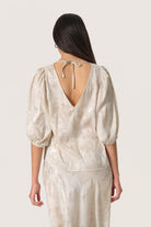 Create an understated look with the Soaked in Luxury Kitty blouse, made from a flowy fabric with a soft metallic sheen and elegant tie detailing to the back.