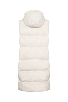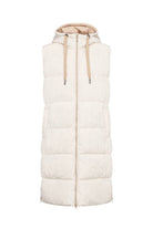 Featuring a stylish diagonal quilt and a hood finished with a draw string tightener. In a versatile cream, the Nina gilet also has a soft sand coloured lining.