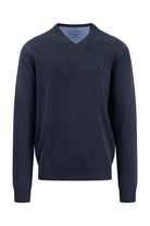 Fynch Hatton Superfine Cotton V-Neck Jumper - Navy