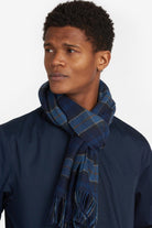 Made from 100% lambswool which is warm and soft next to the skin without being too weighty. The scarf is in a navy blue and tan check and finished with a traditional tasselled hem. The scarf measures 180cm x 25cm.