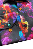Claudio Lugli Satin Cotton Multicoloured Smoke Print Shirt - Black