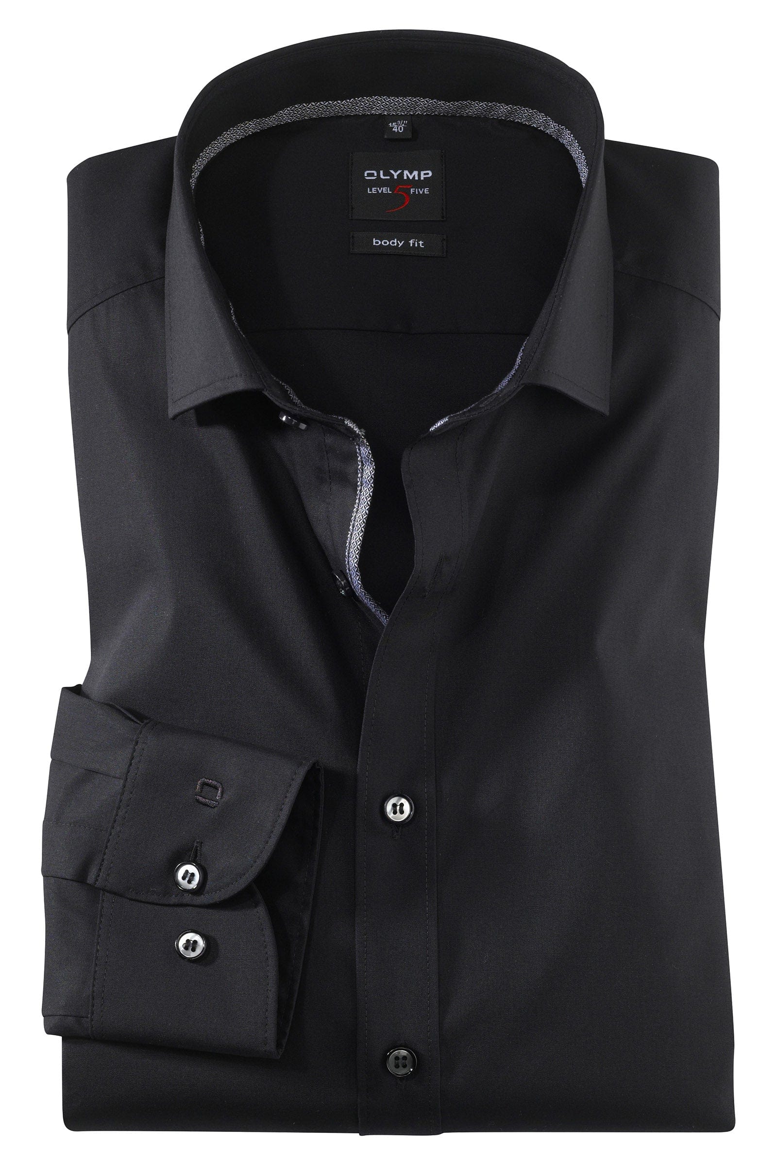 Olymp Level 5 Body Fit Plain Shirt - Black