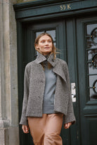 Saint Tropez Fawn Textured Short Coat - Mist Grey Melange