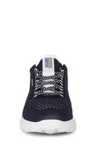 Styled in a versatile navy with a contrasting white sole for a luxe sporty look.