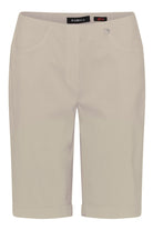 Elevate your summer style with the Robell Bella 04 Shorts in a neutral gold hue. Crafted from a soft viscose blend with added stretch, these above-the-knee (11" inside leg/28cm) shorts offer a flattering slim fit and all-day comfort, making them an easy choice for warm-weather outings or relaxed weekends. The pull-on design with an elasticated waist ensures effortless wear, while the subtle turn-up hems and sleek silhouette add a hint of contemporary flair to any wardrobe.