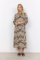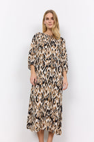 Soya Concept Fang Printed Midi Dress - Desert Brown Combi