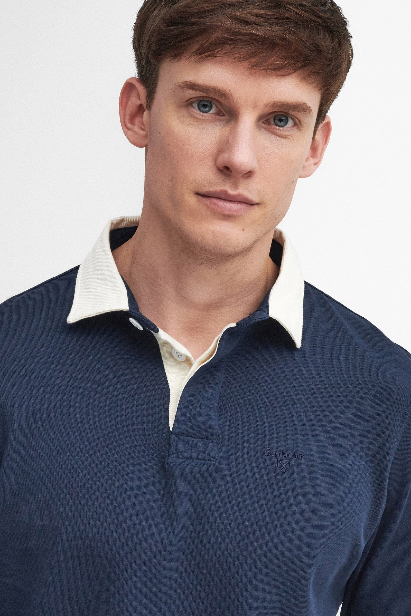 This classic rugby features a contrasting cream collar and placket made from a soft cotton jersey. Ribbed cuffs and subtle tonal Barbour embroidery complete this off-duty essential.