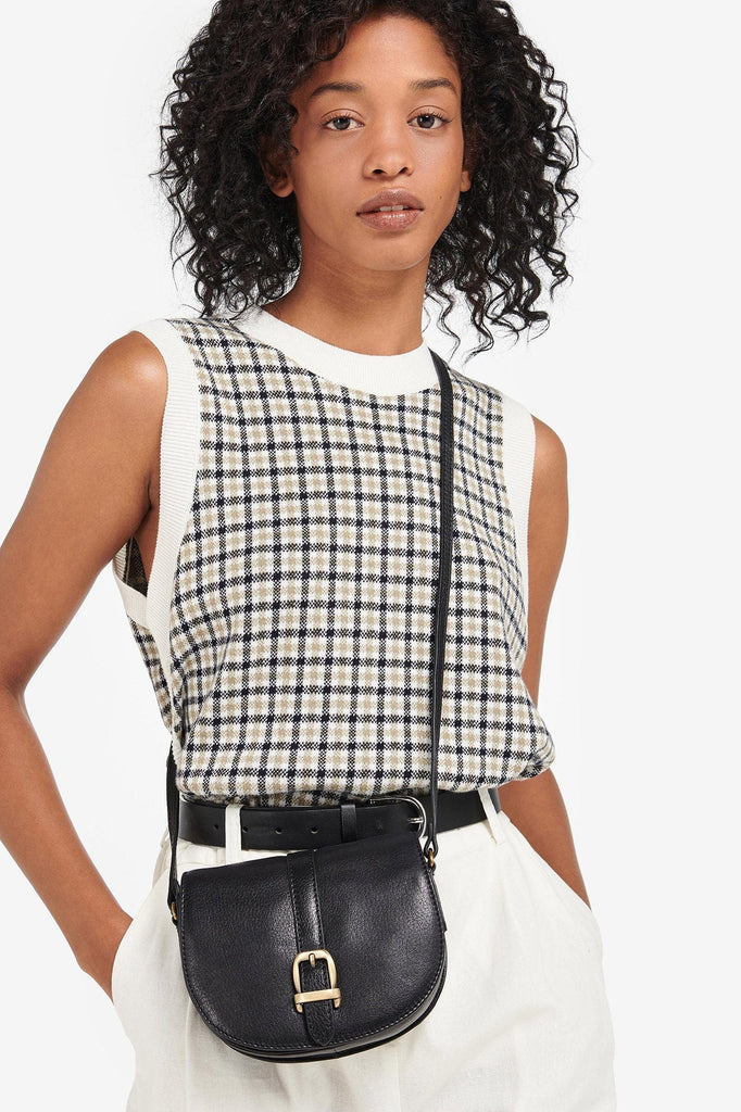 The saddle bag is made to a useful size perfect for carrying your bits and bobs around day to day. Featuring a chic brass effect buckle with a magnetic snap to make sure your valuables are kept secure. Easily adjustable to make it the perfect length. Styled with a Barbour tartan lining and subtle tonal Barbour embroidery.