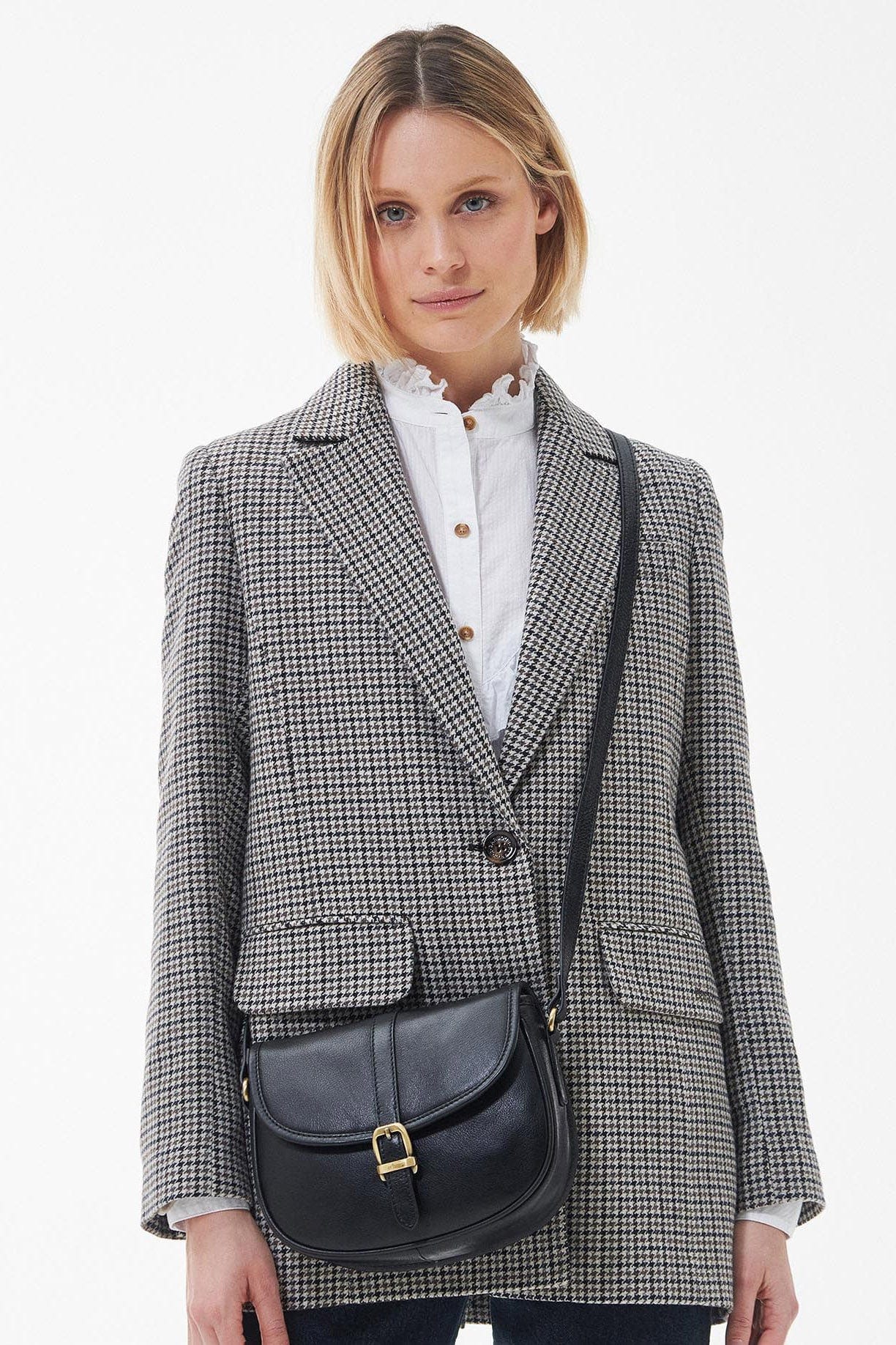 The saddle bag is made to a useful size perfect for carrying your bits and bobs around day to day. Featuring a chic brass effect buckle with a magnetic snap to make sure your valuables are kept secure. Styled with a Barbour tartan lining and subtle tonal Barbour embroidery. The bag measures 20cm x 23.5cm x 7cm.
