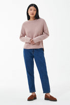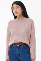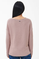 Framed with a flattering boat neckline. The Barbour jumper is the ideal weight for layering thanks to the pure cotton handle and textured knit. A rolled hem, dropped shoulders and split sides add a casual feel to this easy-to-wear piece.