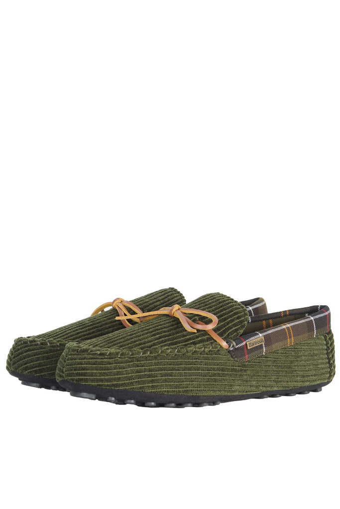 Classically styled to a moccasin design sporting a suede outer with tartan trims to the ankle and a cosy faux fur lining. A metal Barbour badge features on the front of the slipper and leather lacing for a traditional finish.