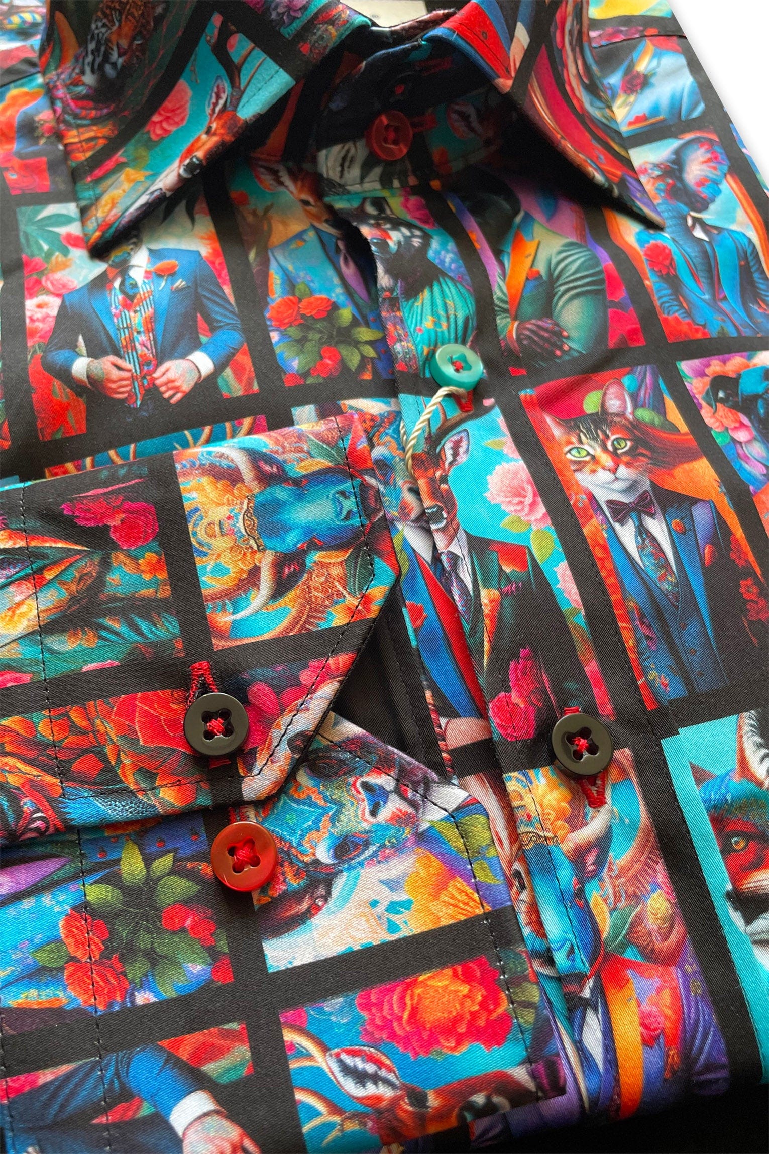 Claudio Lugli Satin Cotton Wildlife Framed Print Shirt - Black
