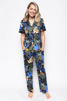 Made from a lovely cotton and modal blend ensuring the top is perfect for a comfortable nights sleep being lightweight and soft on the skin. Featuring short sleeves a one piece pointed collar and button through front. Boasting an all over toucan and floral print with solid trims for a luxe look.