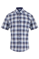 Add a lightweight Summer shirt to your collection from Douglas and Grahame's Drifter collection. Styled with a dark blue and beige check. Made from a soft and breathable pure cotton with short sleeves, making it perfect for Summer.