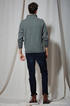 Made from a pure cotton to a mid-weight in a lindgreen and navy knit. Design details include a navy trim to the inner collar elbow patches and a neat half zip neckline for a smart finish.