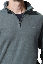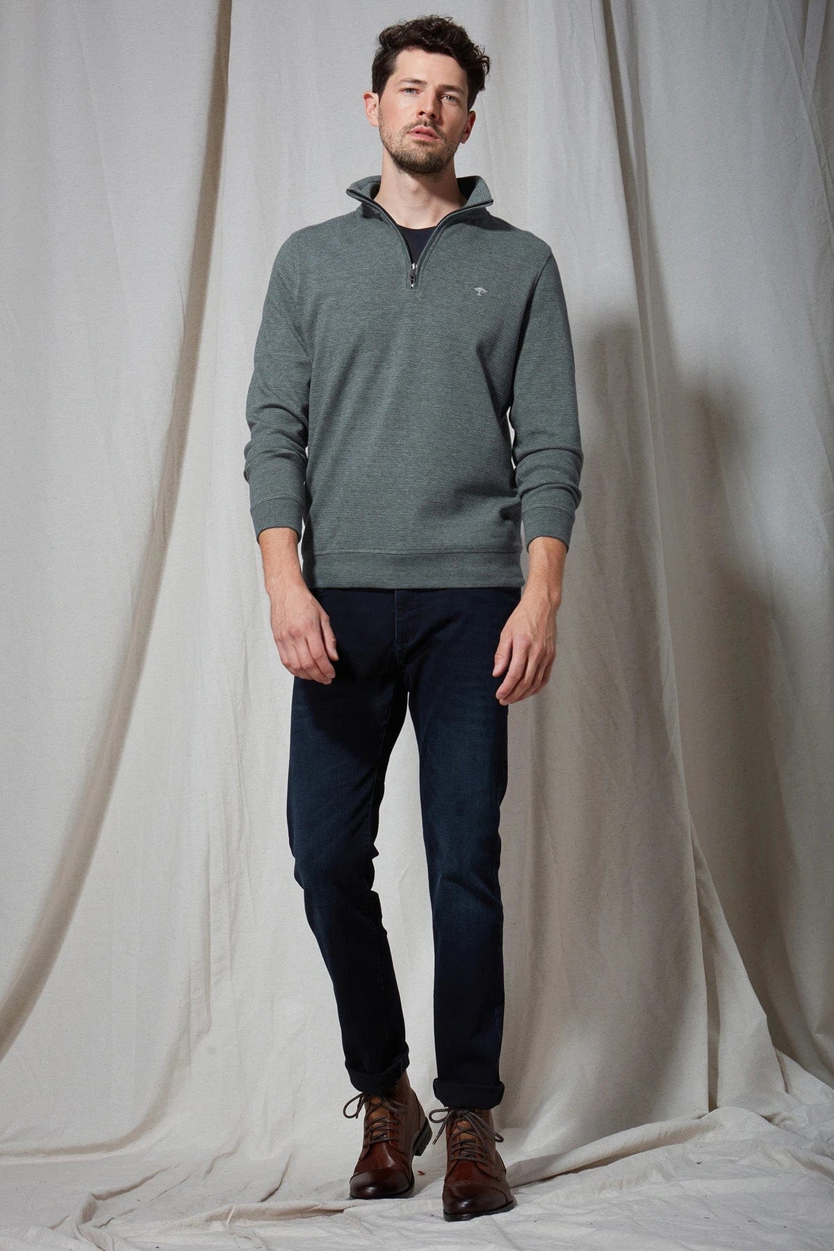 Fynch Hatton Half Zip Cotton Sweatshirt - Lindgreen/Navy