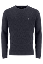 Fynch Hatton Textured Crew Neck Jumper - Navy