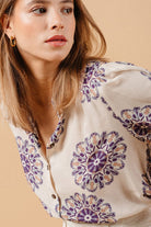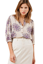 Grace & Mila Manoline Printed Blouse - Beige Purple
