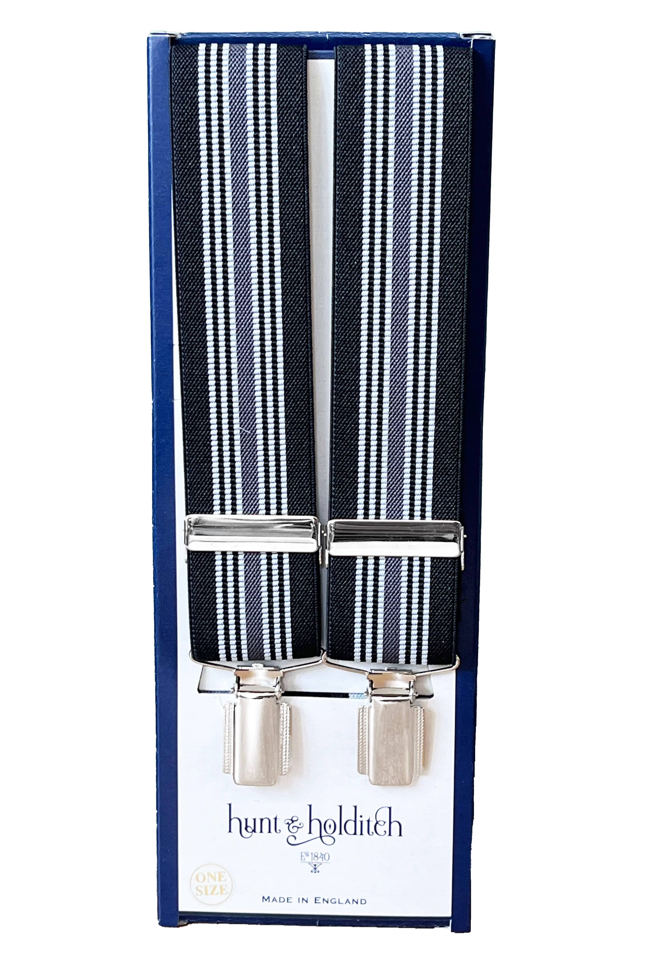 Hunt & Holditch Stripe Detail 35mm Braces - Black/Grey