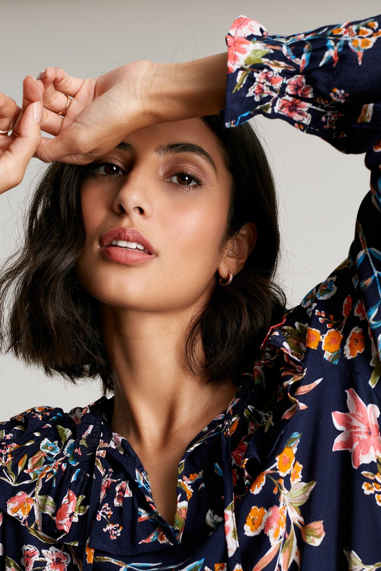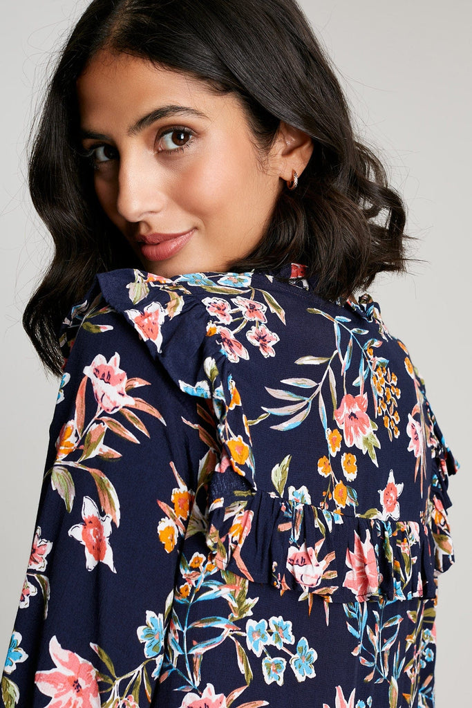 Joules Ruby Keyhole Frill Tiered Tunic - Navy Peak Floral