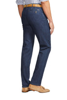 Crafted from super soft stretch denim these trousers offer the look and style of a jean with the addition of the highest levels of comfort with their trouser style. Thanks to signature detailing from Meyer such as a hidden zip safety coin pocket a colourfully woven interior lining and the signature stretch-waistband these trousers are the perfect all round garment. A safety pin on the zip slider also prevents unintended opening so you can feel confident when striding out in your Meyer Dubai denim trousers.