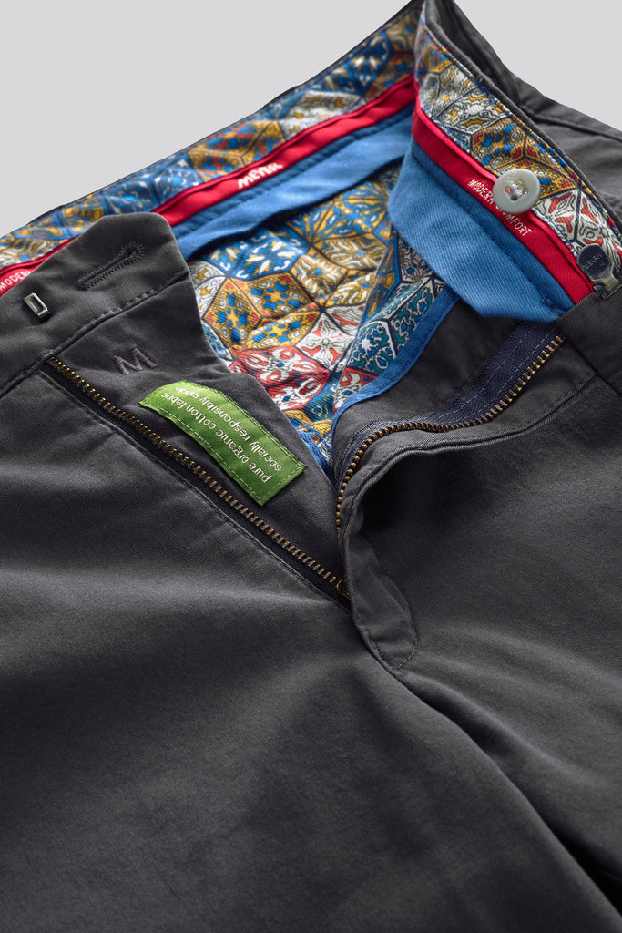 Upgrade your trouser collection with these Meyer Oslo cotton chinos. The Oslo is the perfect trouser for driving and travelling thanks to their mechanical stretch waistband offering all day comfort. Carefully produced from organic cotton.