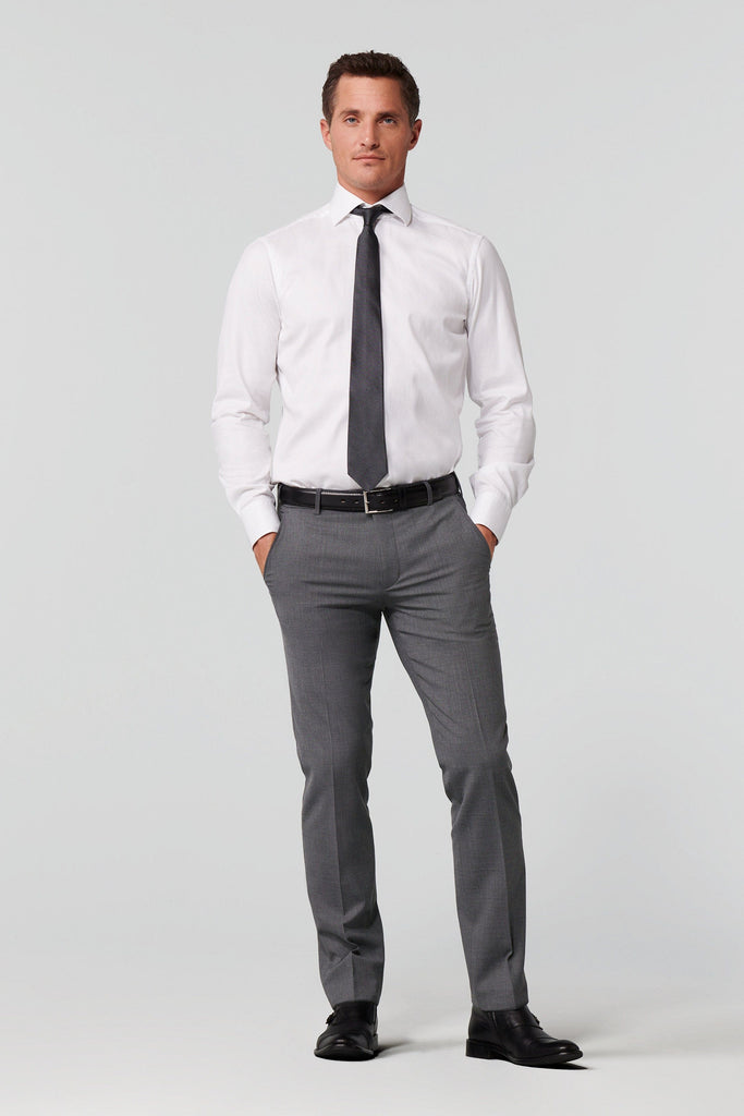 Wear these trousers with a light blue shirt and crisp black leather belt for a timeless formal look.