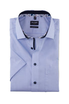 Olymp Luxor Modern Fit Short Sleeve Shirt with Trim - Blue