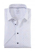Olymp Tendenz Modern Fit Tri-Spot Short Sleeve Shirt - White/Blue