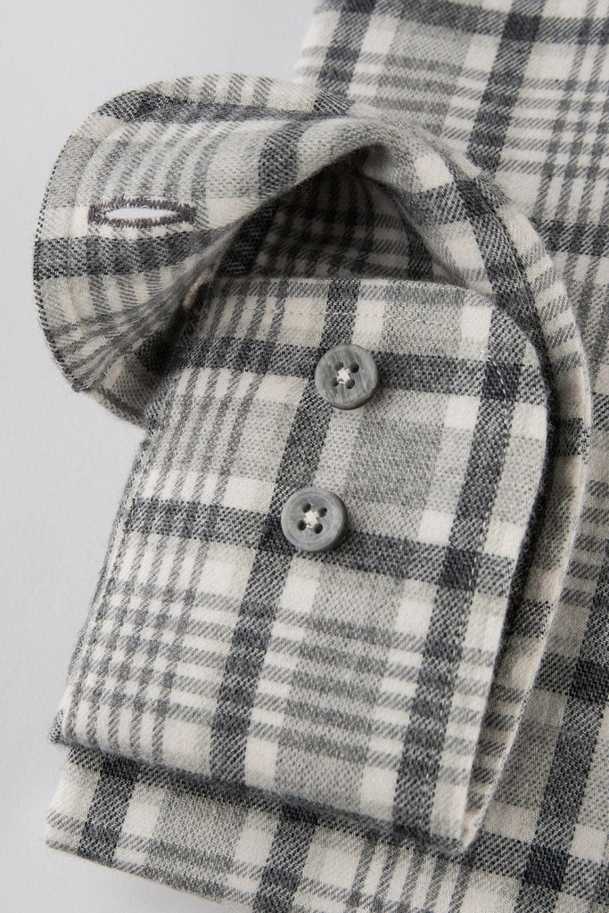 Oscar Flannel Cotton/Wool Shirt - Silver Grey Check