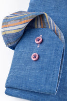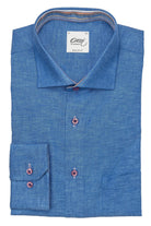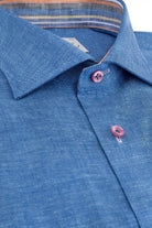 Oscar Plain Linen Blend Regular Fit Shirt - Dark Blue