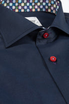 This versatile plain Oscar shirt is crafted from their European cotton cloth. The shirt is finished with a regular collar, gorgeous red buttons and print detail to the inner collar and cuff. This Oscar of Sweden shirt is cut to a regular fit.