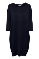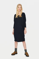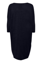 Made from a soft and lightweight viscose blend with a classic round neckline, relaxed dropped shoulder and three quarter length sleeves with attractive ribbed detailing. The back is styled with a mid seam for some added interest to a must have basic. The dress will fall to around knee length