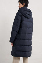 Made from a peach-soft blend, Seasalt's Tide Cycle which has been deeply quilted with REPREVE recycled fibres. Super snuggly to wear thanks to the high, filled collar and generous hood (which can be easily detached). Cut to a flattering A-Line shape with a feminine rounded hem and neatly concealed popper and zip through front. Handy pockets to the outside and inside complete the look.