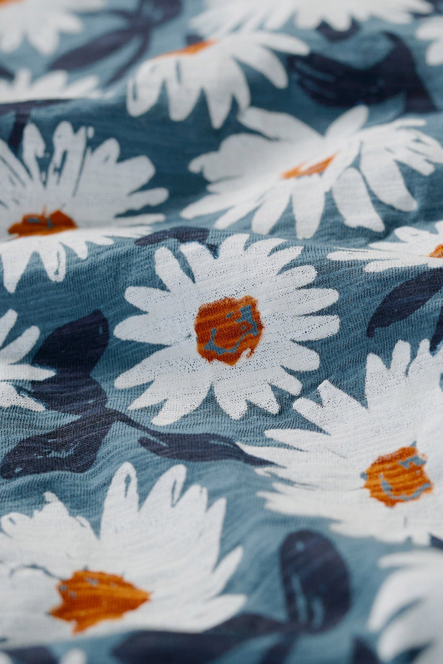 The top has been made from a lovely organic cotton jersey which is feels super soft next to the skin. A pretty floral print features throughout the top which looks when great when worn buttoned up or undone over a vest. Designed with a V neck and short sleeves.