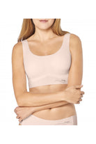 Cleverly designed in a seamless and stretchy material which moulds to the body giving the ultimate light weight feel. The round neckline scooped back and softly padded cups give the bralette added allure whilst the wide shoulder straps and deep sides ensure its fully supportive throughout the day.