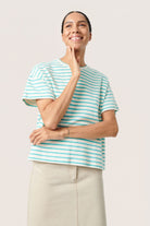 Soaked in Luxury Ingo Boxy Tee - White and Sea Jet Stripe