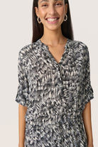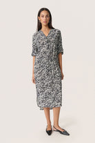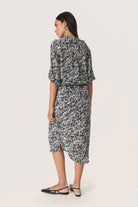 Soaked in Luxury Zaya Printed Midi Dress - Black Stroke Print