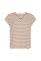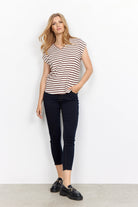 The Soya Concept Ejda T-Shirt boasts easy to wear stripes in wine on an off-white background which look great tucked in or worn out.