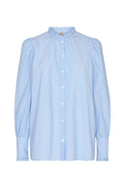Update your collection with the Soya Concept Jessika shirt. A chic take on your standard striped shirt thanks to its pretty pie crust neck and sleeves alongside gathered detailing to the shoulders.