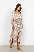 Soya Concept Linda Printed Midi Dress - Dusty Red Combi