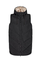 Featuring a stylish diagonal quilt and a hood finished with a draw string tightener. In timeless black the Nina gilet also has a soft sand coloured lining.