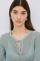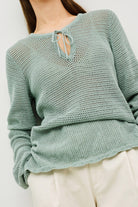 Yerse Net Cotton Openwork Tie Detail Knit - Verde Claro