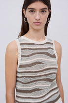 Made from a cotton and linen blend with a touch of silk for a premium look and feel. Scalloped edges frame this unique knit with gentle ribbing to the hem to create a flattering fit.