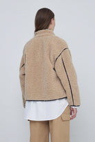 This luxe jacket is made from a double sided fabric, with a high neckline and handy pockets. The dropped shoulders and teddy style give the jacket a more relaxed look whilst still be super stylish.